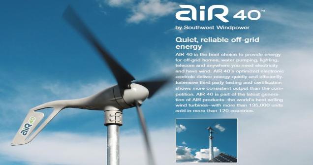 Primus Windpower: WIND-GEN 160W 12VDC W/REG TAIR 40 is the best choice to provide energy for off- grid homes, water pumping, lighting, telecom and anywhere you need electricity and have wind. AIR 40’s optimized electronic controls deliver energy quietly and efficiently. Extensive third party testing Shipping charge to 48 continental US states only, NOT IN Puerto Rico , Hawaii, Alaska, Virgin Islands. We do not ship to APO or PO Box addresses.. |