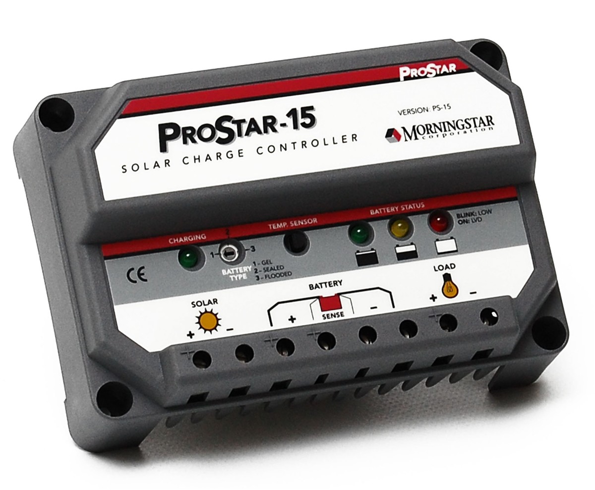 | PS 15 ProStar 15 Charge Controller Morningstar’s superior series switching provides many advantages compared to shunt controllers. Series regulation reduces FET heating and lowers voltage stress on the power FET’s. A series configuration also improves protection against lightning surges and reduces switching noise Shipping charge to 48 continental US states only, Islands. We do not ship to APO or PO Box addresses. |